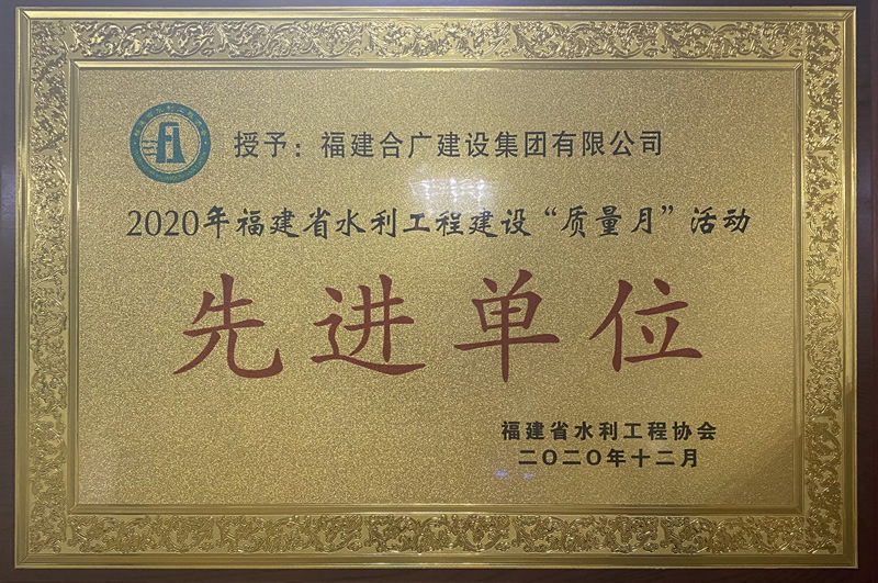 • 福建合廣建設(shè)集團(tuán)有限公司2020年費(fèi)水利工程質(zhì)量月榮譽(yù)證書